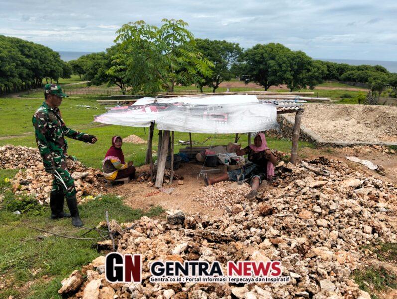 SUMBA TENGAH – Babinsa Koramil 03/Katikutana Kodim 1613/Sumba Barat, Sertu Ilham Lahiya, melaksanakan komunikasi sosial (Komsos) bersama warga yang sedang mengerjakan batu pecah di Desa Wendewa Barat, Kecamatan Mamboro, Kabupaten Sumba Tengah, Minggu (18/01/2026).