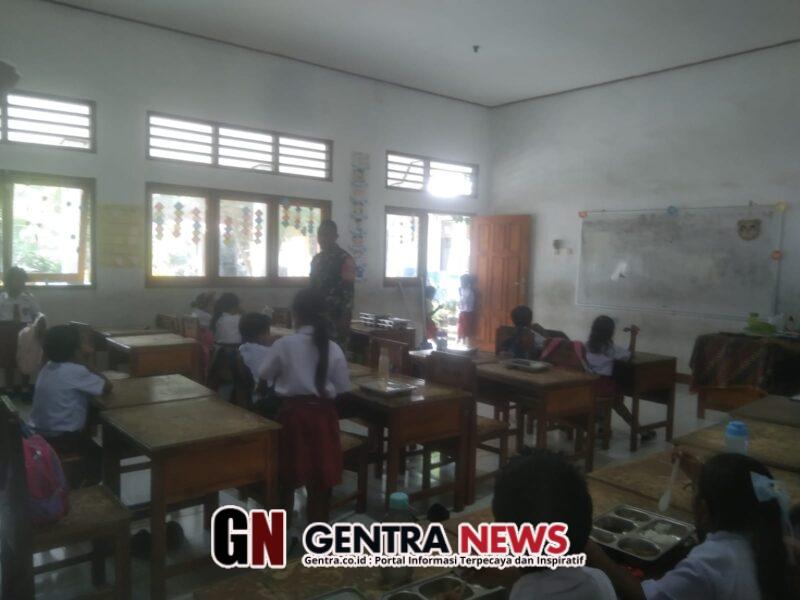 Lembata – Babinsa Ramil 1624-03/Lewoleba, Pratu Mario Alexandro Lasa Ndapa, melaksanakan kegiatan monitoring dan pendampingan pendistribusian Program Makanan Bergizi Gratis (MBG) di wilayah Kelurahan Lewoleba Selatan, Kecamatan Nubatukan, Kabupaten Lembata, pada Senin (19/01/2026).
