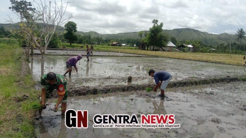 NTT – Sumba Timur. Dalam rangka mendukung ketahanan pangan di wilayah binaan, Babinsa Koramil 05/Waingapu Kodim 1601/Sumba Timur, Sertu M. Ali, melaksanakan pendampingan kepada petani tanam padi di Kelurahan Malumbi, Kecamatan Kambera, Kabupaten Sumba Timur, pada Senin (19/01/2026).