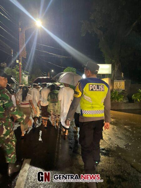 Ditengah gerimisnya hujan, tampak Serka hamid bersinergi bersama Bhabinkamtibmas dan pecalang begitu sigap memberikan pengawalan dan pengamanan berlangsungnya persembahyangan warga dan sesolahan Sang Hyang Jaran yang dilaksanakan di di perempatan Desa Adat Kutampi.