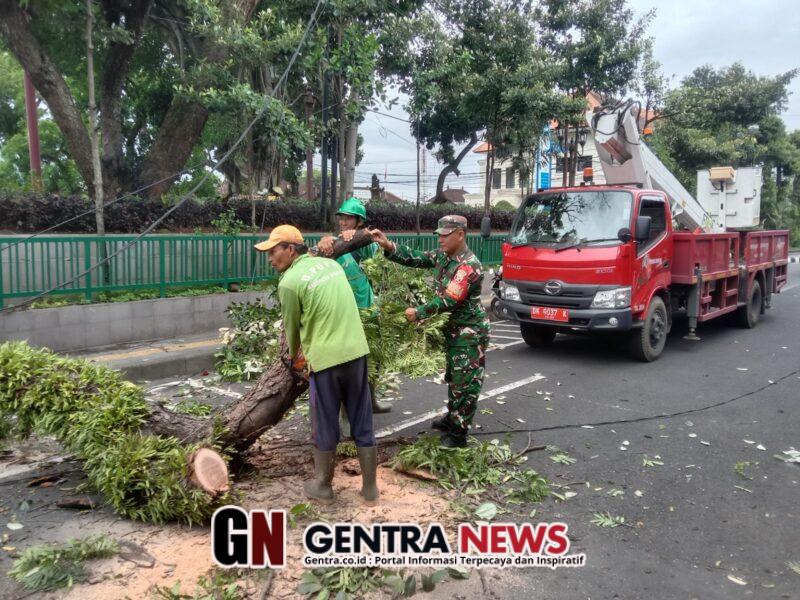 Curah hujan tinggi yang disertai angin kencang mengakibatkan sebuah pohon perindang patah dan tumbang hingga melintang di badan Jalan Kapten Dipta, Lingkungan Teges, Kelurahan Gianyar, sehingga sempat mengganggu arus lalu lintas dan membahayakan pengguna jalan.
