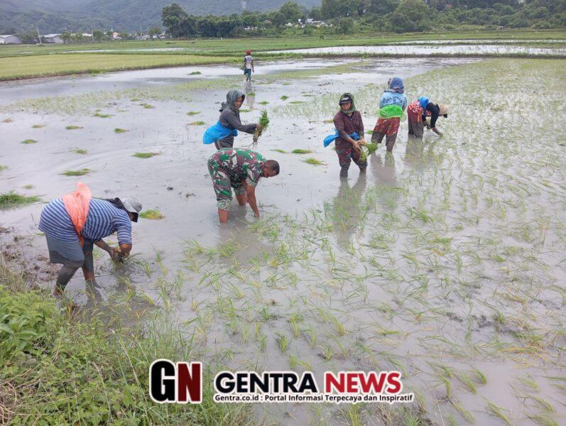 Kegiatan ini merupakan bagian dari pendampingan Babinsa kepada petani, guna mendukung peningkatan hasil pertanian sekaligus mempererat kemanunggalan TNI dengan rakyat. Dengan penuh semangat, Serka Paulus bersama para petani menanam bibit padi secara bergotong royong di lahan persawahan milik warga.