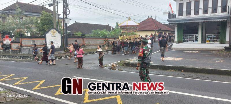 Dihadiri oleh ratusan warga, prosesi upacara pengabenan itupun diwarnai dengan arak-arakan pengabenan ( wadah/petulangan ) yang mendapat pengawalan dan pengamanan dari aparat Babinsa bersama Bhabinkamtibmas dan pecalang.