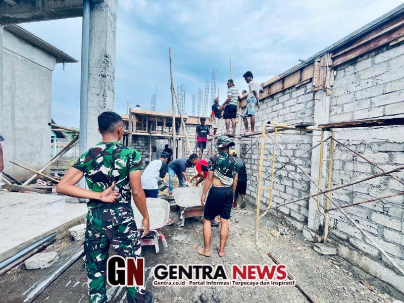 • Peduli Sarana Ibadah, Personel Kompi Senapan A Laksanakan Pengecoran Masjid Aeramo