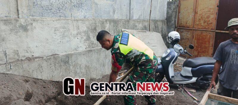 Ende – Babinsa Koramil 1602-01/Ende melaksanakan kegiatan Karya Bakti pembangunan proyek bersama masyarakat di Jalan Kelimutu, Kelurahan Kelimutu, Kecamatan Ende Tengah, Kabupaten Ende, Kamis (22/1/2026).