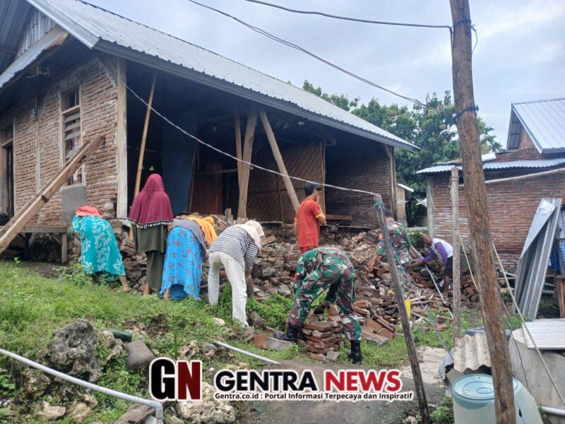 ‎Mengetahui kejadian tersebut, Babinsa Serda Akhyar segera mendatangi lokasi kejadian untuk melakukan pengecekan kondisi rumah sekaligus memberikan bantuan awal. Bersama personel Koramil 1607-09/Utan dan warga sekitar, Babinsa bahu-membahu mengumpulkan material tembok yang roboh serta membersihkan sisa-sisa runtuhan agar tidak mengganggu akses jalan dan aktivitas masyarakat.