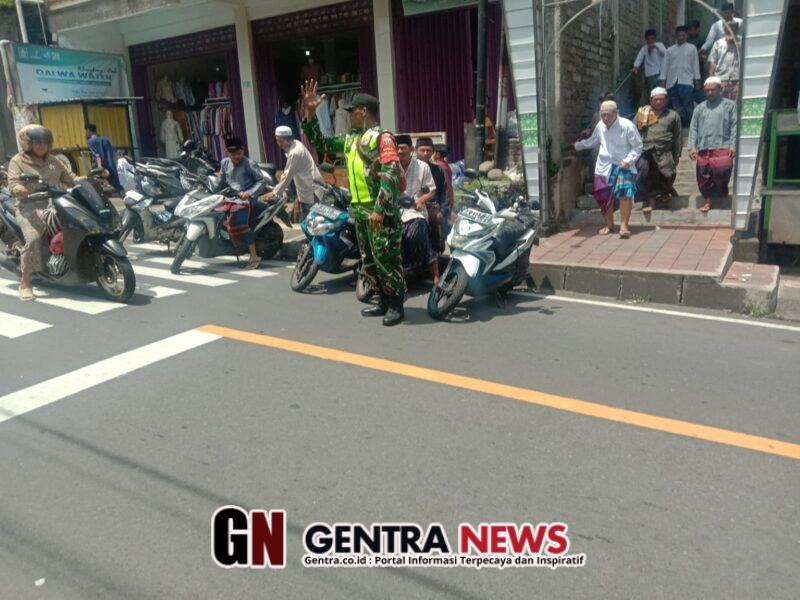 Kegiatan pengawalan dan pengamanan rutin setiap Jumat ini digelar Serka Nyoman dengan bersinergi bersama anggota Badan Keamanan Kampung ( BKK ) Kampung Muslim Lebah.