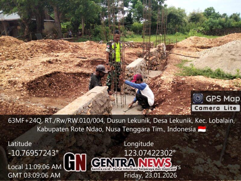 Babinsa Koramil 1627-01/Ba’a melaksanakan kegiatan monitoring wilayah sekaligus pemantauan pendistribusian material dan pengawasan pembangunan Koperasi Desa/Kelurahan Merah Putih (KDKMP) di Desa Lekunik, Kecamatan Lobalain, Kabupaten Rote Ndao. Kegiatan ini dilaksanakan pada Jumat, 23 Januari 2026, sekitar pukul 11.00 WITA.