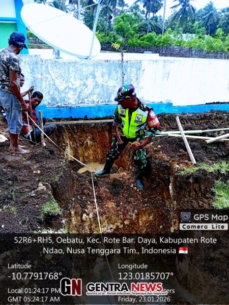 Kegiatan tersebut dilaksanakan pada Jumat, 23 Januari 2026, mulai pukul 08.00 Wita hingga 16.00 Wita, bertempat di lokasi KDKMP Oebatu, Desa Oebatu, Kecamatan Rote Barat Daya, Kabupaten Rote Ndao. Babinsa bersama para tukang melaksanakan pemasangan boplang serta tali batas sebagai acuan awal pekerjaan fondasi koperasi.