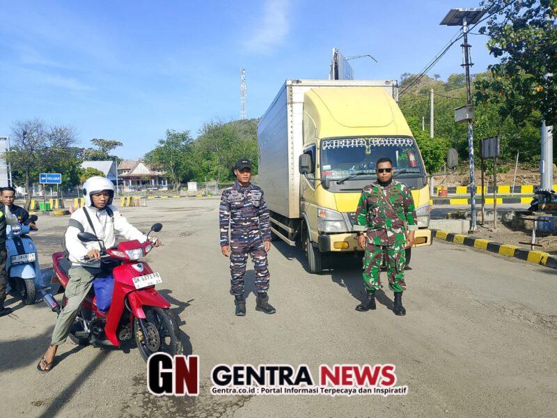 Selama kegiatan berlangsung, Serda Lalu Nasrul Wijaya turut melakukan pemantauan situasi di sekitar pelabuhan, memberikan imbauan kepada pengguna jasa penyeberangan agar tetap tertib serta mematuhi aturan keselamatan.