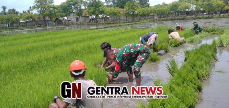 NTT – Sumba Timur.  Dalam rangka mendukung program ketahanan pangan nasional serta mempercepat masa tanam padi, Babinsa Koramil 06/Karera Kodim 1601/Sumba Timur, Pratu Aldit Amah, melaksanakan pendampingan kepada petani dengan membantu mencabut bibit padi di Desa Praimadita, Kecamatan Karera, Kabupaten Sumba Timur, pada Minggu (25/01/2026).