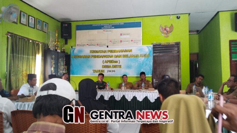 Rapat tersebut dihadiri oleh Kepala Desa Dete beserta perangkat desa, Ketua dan anggota BPD, pendamping desa, tokoh masyarakat, serta perwakilan lembaga desa lainnya. Kegiatan ini bertujuan untuk membahas secara transparan dan partisipatif rencana penggunaan anggaran desa tahun 2026 agar tepat sasaran dan sesuai dengan kebutuhan prioritas masyarakat.