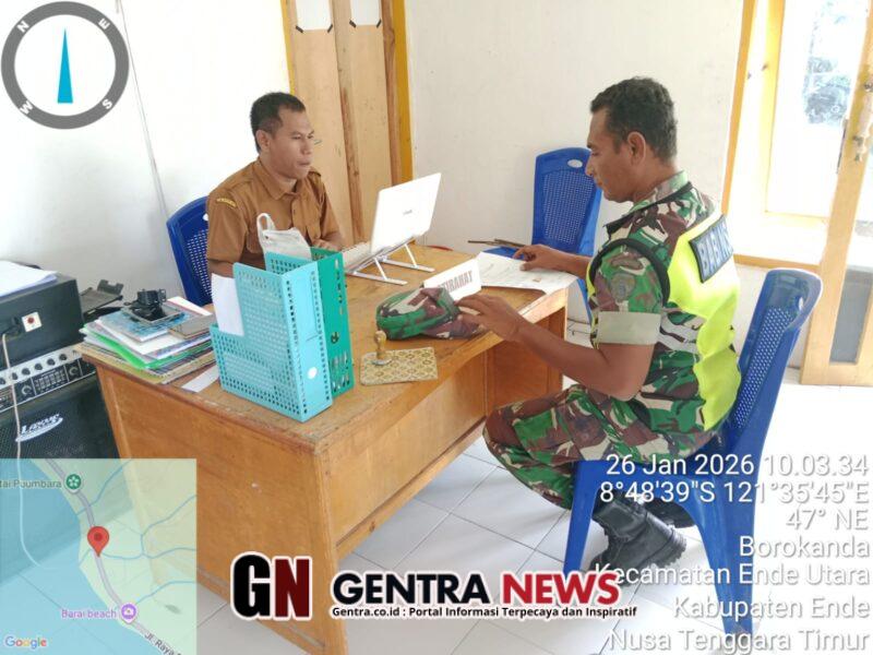Ende – Babinsa Koramil 1602-01/Ende, Kodim 1602/Ende, melaksanakan kegiatan Pengumpulan Data Teritorial (Puldatater) bersama staf Desa Raterua di Kantor Desa Raterua, Kecamatan Ende Utara, Kabupaten Ende, Senin (26/01/2026).