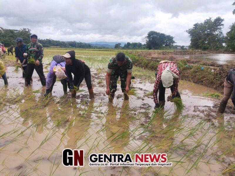 Dengan turun langsung ke sawah dan ikut menanam padi bersama warga, Babinsa berperan aktif membantu serta memberikan motivasi kepada para petani.