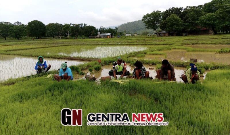 NTT-Kefamenanu., Sebagai wujud nyata pembinaan teritorial dan dukungan terhadap program ketahanan pangan (Hanpangan), Babinsa Koramil 1618-04/Bisel Serka Legius Ludji Leo turun langsung ke sawah bersama warga binaannya di Desa Teba Timur, Kecamatan Biboki Tanpah, Kabupaten Timor Tengah Utara (TTU), Selasa (27/1/2026). Kehadiran Babinsa di tengah aktivitas pertanian menjadi bukti nyata kemanunggalan TNI dengan rakyat.