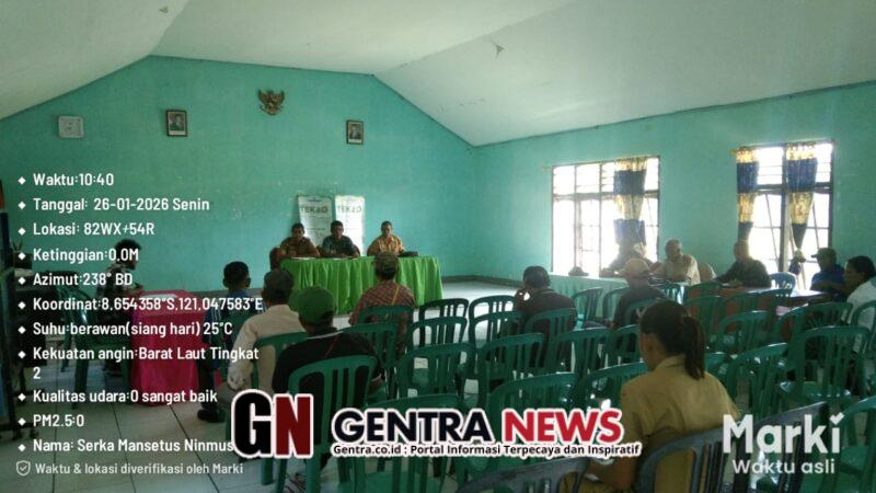 Ngada – Babinsa Koramil 1625-01/Bajawa, Serka Mansetus Ninmusu, menghadiri rapat konsolidasi perencanaan anggaran Desa Tahun 2026 yang dilaksanakan di Aula Kantor Desa Nginamanu, Kecamatan Wolomeze, Kabupaten Ngada, Senin (26/1/2026) pukul 10.48 WITA. Kegiatan ini merupakan bagian dari upaya mendukung tertib administrasi serta perencanaan pembangunan desa yang transparan dan partisipatif.
