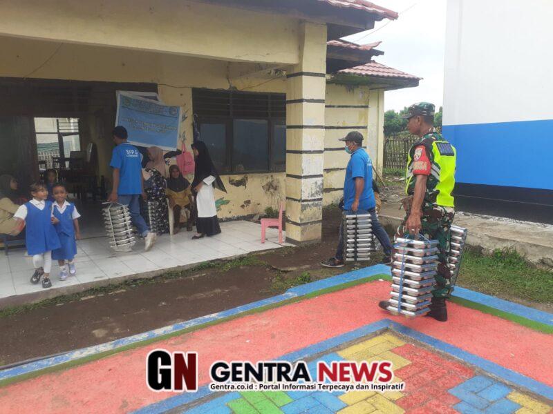 Bima _ Pada Selasa, 27 Januari 2026, Serda Efriadin dan Serka Akbar Babinsa Koramil 1608-05/Donggo aktif memonitor pelaksanaan pembagian Makan Bergizi Gratis (MBG) di wilayah Kecamatan Soromandi dan Donggo Kabupaten Bima. Kegiatan pembagian MBG tersebar di beberapa desa dan dijalankan dalam tahap yang terorganisir.