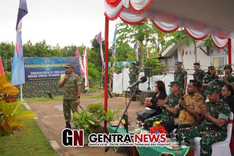 Dalam sambutannya, Danrem 161/Wira Sakti menegaskan bahwa Korem berperan sebagai penghubung antara aspirasi masyarakat dan pihak perbankan, sehingga program bantuan air bersih dapat terealisasi dengan baik. Ia menekankan bahwa keberhasilan pembangunan sumur bor ini merupakan hasil kolaborasi dan kepedulian bersama dalam menjawab kebutuhan masyarakat.