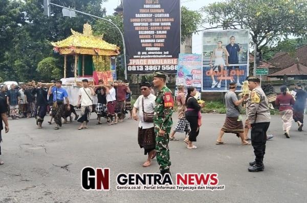 Selama berlangsungnya prosesi penguburan, Babinsa bersama Bhabinkamtibmas dan Pecalang Desa Adat Kengetan hadir di tengah-tengah masyarakat untuk melaksanakan pengamanan serta pengaturan arus lalu lintas di sepanjang rute iring-iringan. Pengaturan dilakukan pada titik-titik persimpangan dengan tujuan menjaga ketertiban lalu lintas, memberikan rasa aman kepada masyarakat, serta mendukung kelancaran jalannya upacara adat.