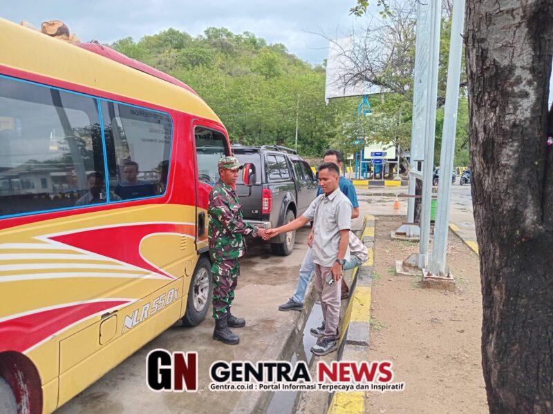 Sumbawa Barat, NTB – Anggota Koramil 1628-04/Poto Tano melaksanakan kegiatan pengamanan (PAM) di Pelabuhan Penyeberangan Poto Tano, Selasa (27/01/2026).