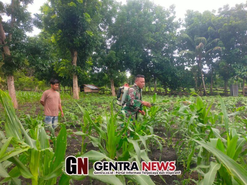 NTT – Sumba Timur. Babinsa Koramil 03/Pahunga Lodu, Kodim 1601/Sumba Timur, Sertu Hendrik Waluandja, melaksanakan pendampingan kepada para petani dalam kegiatan penyemprotan hama tanaman di Desa Paranda, Kecamatan Wulla Waijelu, Kabupaten Sumba Timur, Rabu (28/01/2026).
