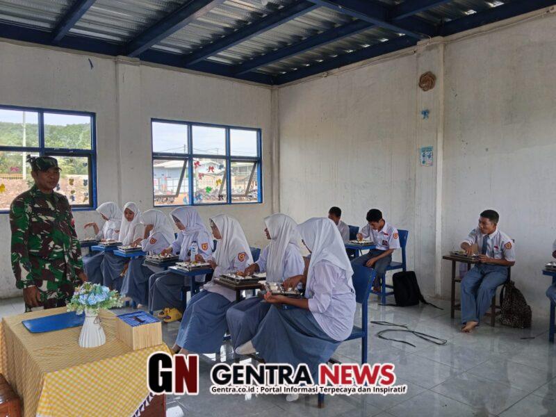 Sumbawa Barat, NTB – Dalam rangka mendukung program pemerintah di bidang peningkatan gizi pelajar, Babinsa Desa Belo Koramil 1628-05/Jereweh, Serda Sukardin, melaksanakan kegiatan pendampingan Program Makan Bergizi Gratis (MBG) di SMK RUM Inovasi Jereweh, Desa Belo, Kecamatan Jereweh, Kabupaten Sumbawa Barat, Rabu (28/01/2025).