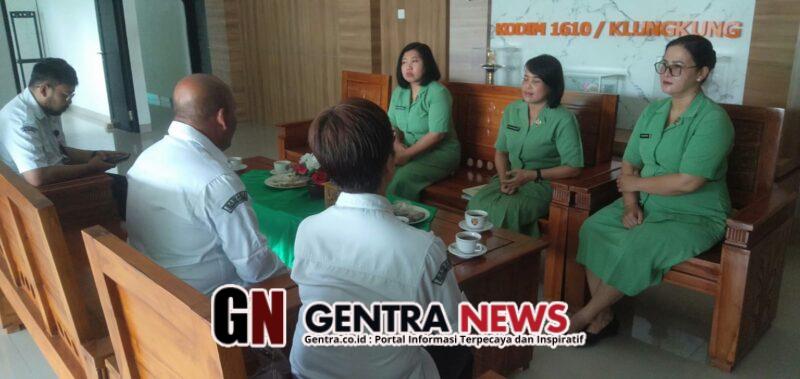 Ketua Seksi Organisasi Persit KCK Kodim Klungkung Ny Putri Suryatha dalam sambutan singkatnya menyampaikan terima kasih dan apresiasi atas kehadiran jajaran Bawaslu Kabupaten Klungkung di Makodim 1610/Klungkung.