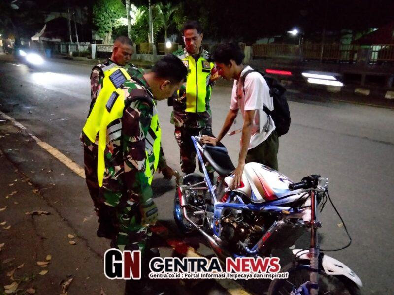 Selain itu, anggota patroli juga menegur warga yang menggunakan sepeda motor dengan knalpot racing dan mengingatkan agar knalpot tersebut dicopot guna mematuhi aturan lalu lintas demi keamanan bersama.