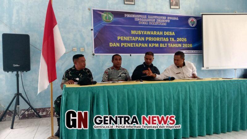 Ngada – Babinsa Koramil 1625-02/Aimere, Serda Evaristus Mosa Bule, menghadiri kegiatan Musyawarah Desa (Musdes) Penetapan Prioritas Usulan Tahun Anggaran 2026 yang dilaksanakan di Aula Kantor Desa Dariwali, Kecamatan Jerebuu, Kabupaten Ngada, Rabu (28/1/2026) pukul 11.00 WITA.