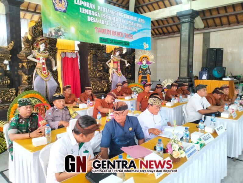 JEMBRANA – Babinsa Kelurahan Tegalcangkring, Serda Yudi Siswanto, menghadiri undangan Rapat Laporan Pertanggung Jawaban (LPJ) Lembaga Perkreditan Desa (LPD) Desa Adat Tegalcangkring Tahun Buku 2025. Kegiatan ini berlangsung di Wantilan Pura Puseh Desa Adat Tegalcangkring, Kecamatan Mendoyo, Kabupaten Jembrana, pada Rabu (28/01/2026).