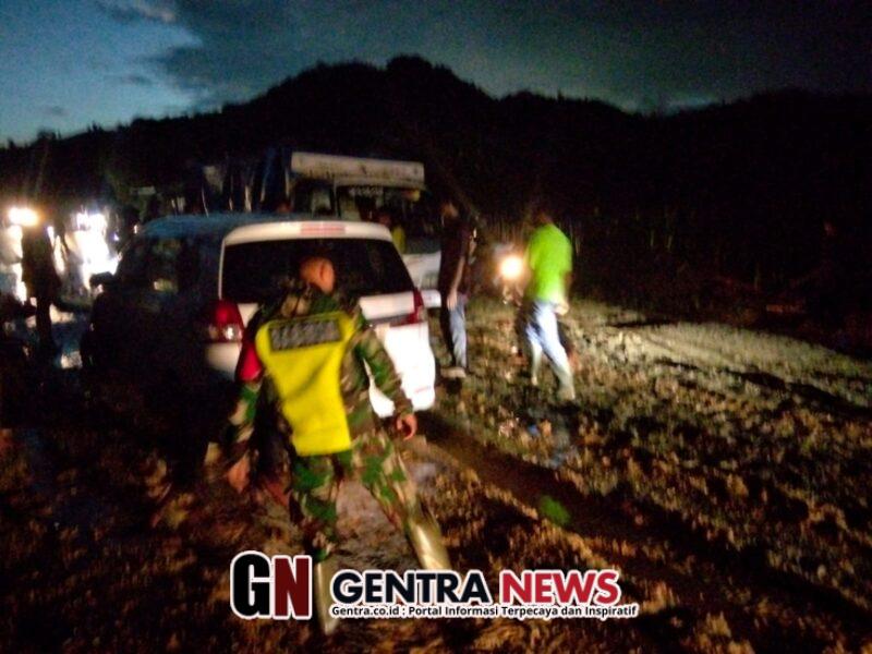 Bima – Babinsa Desa Sari, Serda Junaidin, menunjukkan kepedulian dan sigap langsung membantu masyarakat pengguna jalan yang terjebak akibat longsor material lumpur di jalan lintas Sape-Bima, Desa Sari, Kecamatan Sape, Kabupaten Bima. Longsor terjadi Kamis sore, 29 Januari 2026, setelah hujan deras mengguyur wilayah Kecamatan Sape dan sekitarnya.