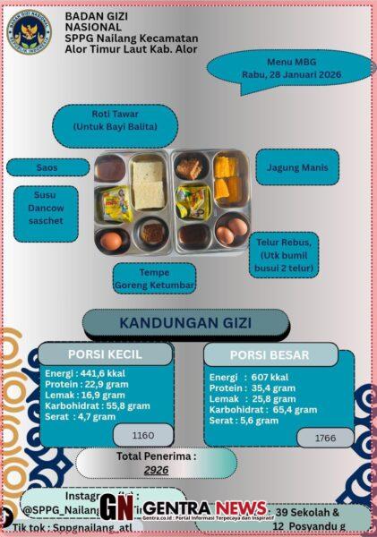 Babinsa Desa Nailang dan Desa Waisika, Praka Bing Jonas Lau We, melaksanakan kegiatan pemberian makan sehat dan bergizi bagi anak sekolah di wilayah Kecamatan Alor Timur Laut, Kabupaten Alor, pada Rabu (28/1/2026) mulai pukul 08.00 Wita. Kegiatan ini terlaksana atas kerja sama dengan SPPG Mandiri di bawah naungan Yayasan Abdi Muli Sejahtera Mitra BGN yang beroperasi di wilayah Kodim 1622/Alor.