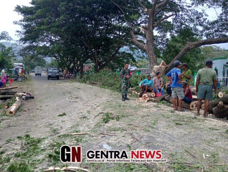 Babinsa Desa Sawe, Serda Adi Putra, bersama warga setempat melaksanakan pemangkasan dahan pohon yang telah tumbuh terlalu tinggi dan dinilai membahayakan pengguna jalan raya. Dahan pohon tersebut berpotensi mengganggu jarak pandang serta membahayakan pengendara, terutama saat cuaca buruk.