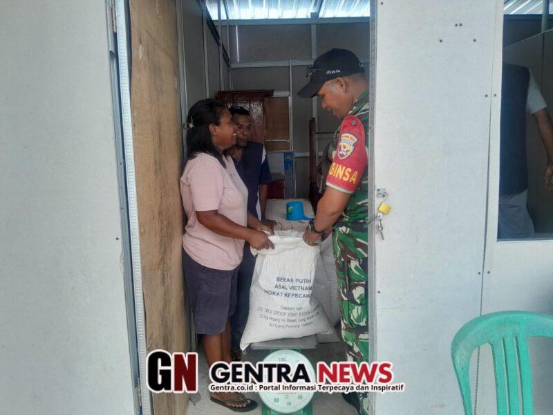 Kegiatan tersebut berlangsung pada pukul 09.15 WITA bertempat di Huntara III, Desa Konga, Kecamatan Titihena. Dalam kesempatan tersebut, Babinsa turut membantu proses pendistribusian beras bantuan kepada warga yang telah terdata sebagai penerima manfaat agar penyalurannya tepat sasaran serta berjalan tertib dan lancar.