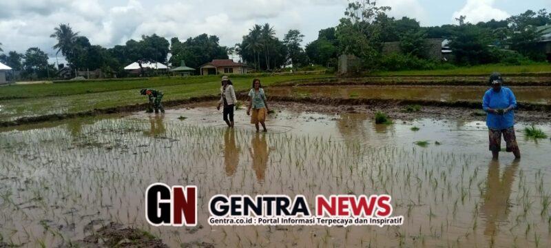 NTT – Sumba Timur. Babinsa Koramil 01/Lewa Kodim 1601/Sumba Timur, Serma Andreas Tapenu, melaksanakan pendampingan kepada petani dalam kegiatan penanaman padi di Kelurahan Lewa Paku, Kecamatan Lewa, Kabupaten Sumba Timur, Sabtu (31/01/2026).
