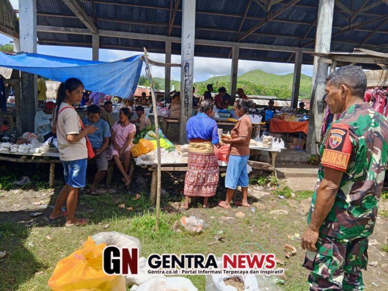 NTT – Sumba Timur. Dalam rangka mengantisipasi terjadinya keributan dan menjaga situasi keamanan serta ketertiban masyarakat, Babinsa Koramil 04/Tabundung Kodim 1601/Sumba Timur, Koptu Yupiter Babis melaksanakan kegiatan himbauan kepada warga di Pasar Prekomba, Desa Prekomba, Kecamatan Tabundung, Kabupaten Sumba Timur, Sabtu (31/01/2026).