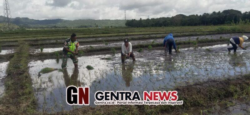Kegiatan tersebut tidak hanya menjadi rutinitas pertanian, namun juga simbol kepedulian TNI AD dalam mendukung ketahanan pangan di wilayah binaan. Dengan penuh semangat, Sertu Yulius David bahu-membahu bersama para petani, menanam bibit padi di lahan sawah yang telah disiapkan, menciptakan suasana kerja yang harmonis dan penuh kekeluargaan.