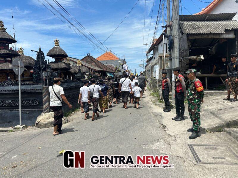Sebagai upaya untuk memastikan jalannya upacara ini aman, tertib dan lancar, bersinergi bersama Bhabinkamtibmas dan pecalang kita lakukan pengawalan dan pengamanan bersama.