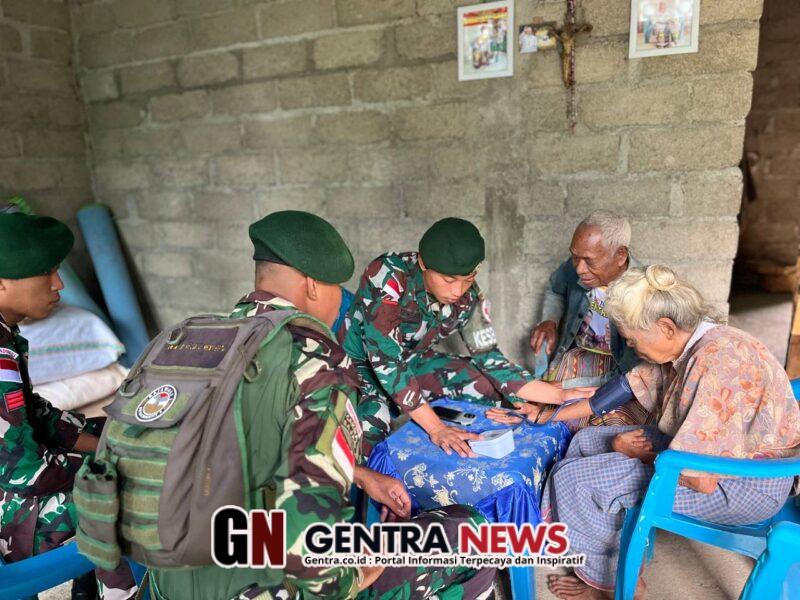 Nino – Satgas Pamtas RI-RDTL Sektor Barat Yonarhanud 2 Kostrad Pos Nino menunjukkan aksi nyata dengan menggelar layanan Kesehatan Keliling bagi warga lanjut usia di Desa Nino, Kec. Bikomi Nilulat, Kab. TTU. Sabtu (31/01)