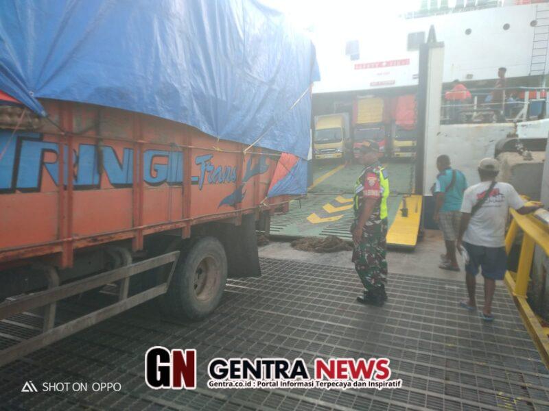 Babinsa Kodim 1627/RN, Serda Roni Riberu, melaksanakan kegiatan pengamanan dan pemantauan bongkar muatan kapal ASDP di Pelabuhan Pantai Baru, Desa Ofalangga, Kecamatan Pantai Baru, Kabupaten Rote Ndao, pada Minggu (1/2/2026). Kegiatan ini dimulai sejak pukul 15.00 WITA sebagai bagian dari tugas pengawasan wilayah serta upaya menjaga keamanan dan ketertiban di area pelabuhan.