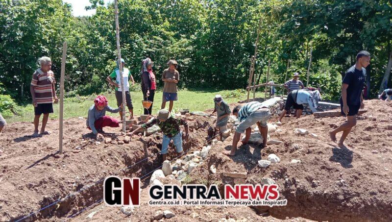 Kegiatan Pra TMMD diawali dengan pengerjaan pondasi bangunan. Di lapangan, terlihat semangat gotong royong yang kuat antara Babinsa dan masyarakat setempat, mencerminkan kemanunggalan TNI dengan rakyat dalam mendukung pembangunan desa.