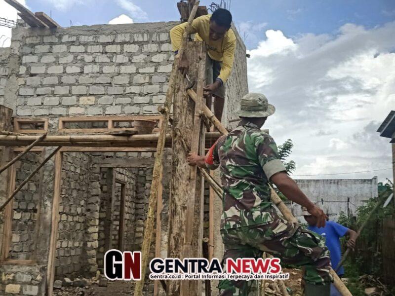 SUMBA TENGAH, NTT – Babinsa Koramil 03/Katikutana Kodim 1613/Sumba Barat Sertu Sunardin membantu warga yang sedang melaksanakan pembangunan rumah di Desa Tanamodu, Kecamatan Katikutana Selatan, Kabupaten Sumba Tengah, Senin (02/02/2026).