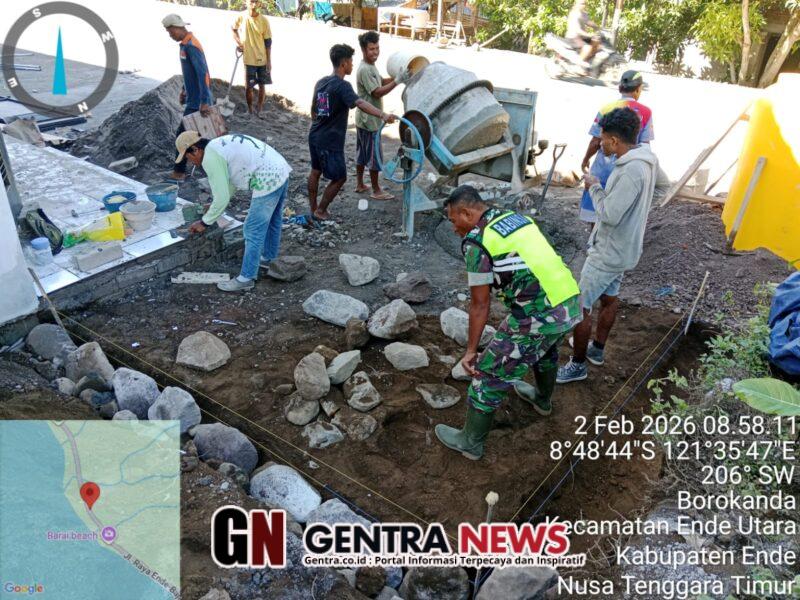 Kegiatan tersebut dilaksanakan pada hari Senin, 02 Februari 2026, pukul 09.00 WITA. Babinsa Koramil 1602-01/Ende atas nama Pelda Mursalim Mandar turun langsung membantu masyarakat dalam pembangunan tembok pembatas sebagai persiapan pembuatan rabat jalan.