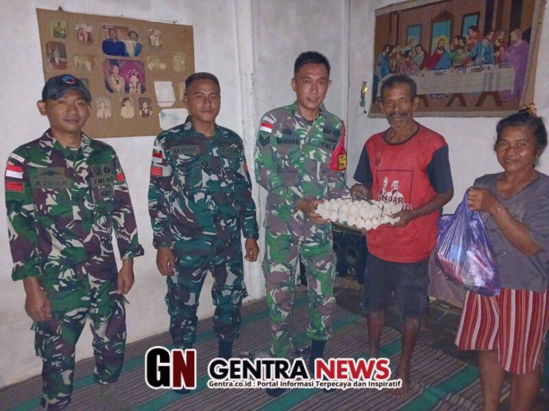 Banain – Satgas Pamtas RI-RDTL Sektor Barat Yonarhanud 2 Kostrad Pos Napan Bawah memperkokoh kemanunggalan antara TNI dan rakyat di wilayah perbatasan dengan berbagi kebaikan berupa sembako dan bahan makanan kepada warga di Desa Banain C, Kec. Bikomi Utara, Kab. TTU. Senin (02/02)
