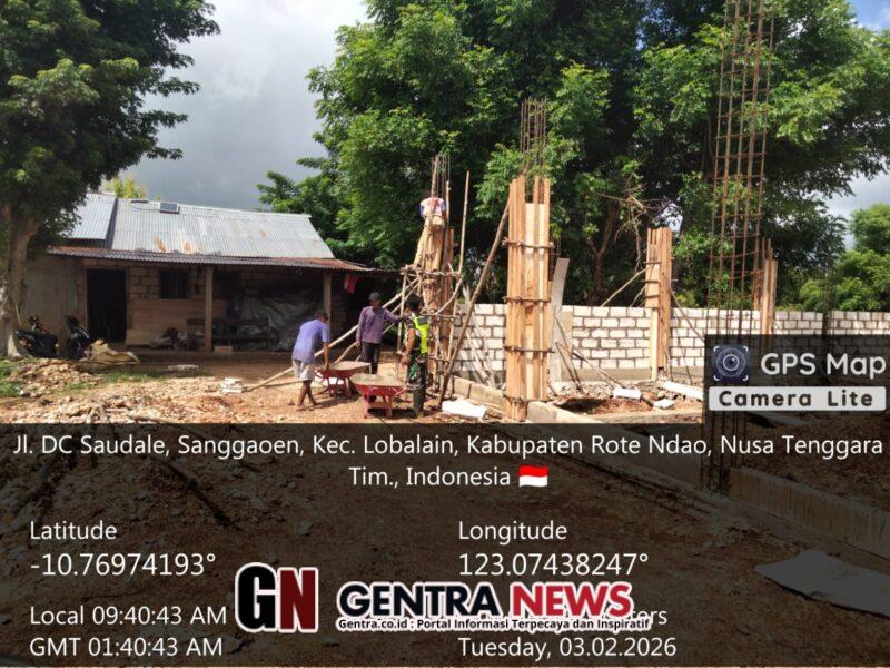 Rote Ndao – Dalam rangka memastikan kelancaran pembangunan sarana pemberdayaan ekonomi masyarakat, Babinsa Koramil 1627-01/Ba’a Serka Ishak Manafe melaksanakan kegiatan monitoring wilayah dan pengawasan pembangunan Koperasi Desa/Kelurahan Merah Putih (KDKMP) di Desa Lekunik, Kecamatan Lobalain, Kabupaten Rote Ndao.