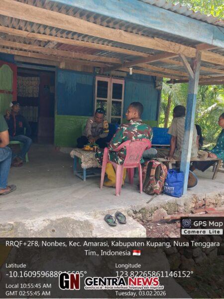 NTT-KUPANG, – Babinsa Kelurahan Nonbes Koramil 1604-04/Amarasi, Kopda Henokh Sabneno bersama Bhabinkamtibmas dan aparat pemerintah melaksanakan kegiatan mediasi terkait permasalahan hewan ternak sapi milik Bapak Efradus Nubatonis yang memakan tanaman milik Mama Naema Mokos. Mediasi dilaksanakan di rumah Ketua RT 20 Desa Nonbes, Kecamatan Amarasi, Kabupaten Kupang. Selasa (03/02/2026).