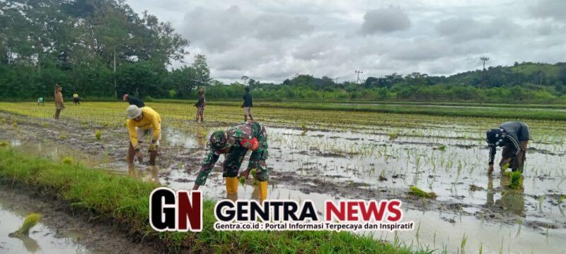 Dalam kesempatan tersebut, Babinsa terjun langsung ke sawah bersama para petani untuk membantu proses penanaman padi. Kegiatan ini merupakan bentuk kepedulian TNI AD melalui peran Babinsa dalam mendukung program ketahanan pangan serta mempererat hubungan antara TNI dan masyarakat di wilayah binaan.