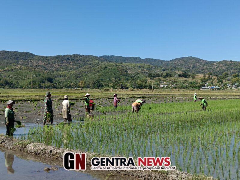 Di bawah terik matahari, Serka Oracio tidak canggung membaur dengan lumpur sawah untuk membantu petani mencabut bibit padi (ndaut) yang siap tanam. Aksi nyata ini dilakukan sebagai upaya memberikan contoh langsung sekaligus memotivasi petani agar lebih bersemangat dalam mengolah lahan mereka.