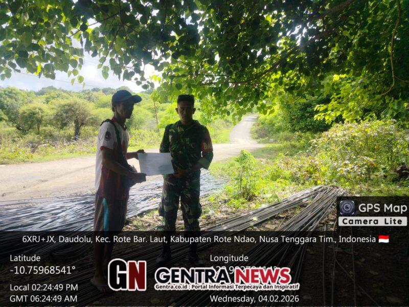 Rote Ndao – Dalam rangka mendukung kelancaran pembangunan di wilayah binaan, Babinsa Koramil 1627-03/Batutua, Koptu Yoseph Gunawan Seran, melaksanakan kegiatan monitoring dan pendampingan penurunan material pembangunan KDKMP di Desa Tualima, Kecamatan Rote Barat Laut, Kabupaten Rote Ndao.