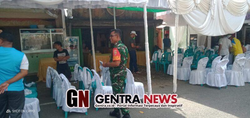 Dalam kesempatan tersebut, Sertu Syarifuddin tidak hanya berdialog dengan warga, tetapi juga turut membantu warga binaan yang sedang mempersiapkan acara pernikahan anaknya. Babinsa bersama warga bahu-membahu memasang terop dan menata kursi sebagai bentuk kepedulian dan solidaritas sosial.
